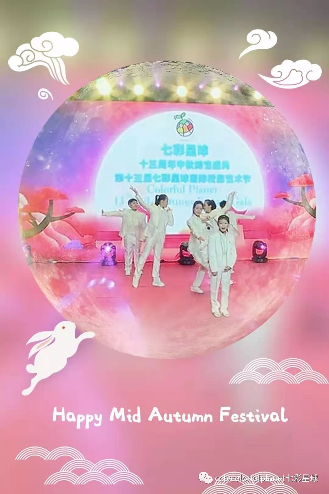 向全球祝中秋快乐,国际巨星风范,同时宣布七彩星球开播十三周年国际艺术盛典,成为全球少年实现梦想的桥梁。来自五大洲的明星欢聚一堂,星光璀璨,美轮美奂,宛如进入梦幻王国。全球少年载歌载舞《七彩星球主题曲》五大洲明星祝福中秋快乐!庆祝七彩星球开播十三周岁生日快乐!来自中国的恒星哥哥阿尔法台上互动,极具舞台魅力,青青姐姐献给全球少年儿童的中秋礼物:世界经典舞台剧《卖火柴的小女孩》《The Little Match Girl 》艺术大家风范, 感人至深 ,是一场净化灵魂之旅,现场观众哭了;金星小宝炫舞This is me, 睿智的科学桥的代表星球宝贝牟桥吉它弹唱《小小少年》、青青姐姐领衔诵读唐诗宋词1200首,双龙兄弟诗词改编成中英文双语歌曲《青玉案 元夕》“众里寻他千百度,蓦然回首,那人却在,灯火阑珊处。”Hundreds and thousands of times, for her I searched in chaos, suddenly, I turned by chance, to where the lights were waning, and there she stood. 将气氛推向高潮。来自中国、美国,马来西亚等国家的明星表演了世界风情的节目,七彩星球少年艺术团的明星少年,李柏钧 蒋金陵炫舞组合《七彩星球》,大型歌舞诗词《梅花》韦嘉沂领唱 大型歌舞《太阳最红毛主席最亲》表演者七彩星球艺术团:李柏钧 蒋金陵 韦嘉沂、位思齐、耿一诺、王姝涵 李世博 汪芮冰王柳澈 王厚淇 代东啸 罗湘茹 焦淼等;来自马来西亚的叶圯森代表七彩星球王子表演了精彩纷呈的双语节目,《变脸》台上台下互动,扣人心弦,《阿里山的姑娘》别具民族风情,嘉宾观众掌声不断,热血沸腾;2019中秋节来了,我们迎来了七彩星球开播十三周年生日庆典。快乐七彩星球,激情一路延续,七彩星球,我们的星球,我们爱七彩星球,世界少年明星合唱震撼全场。希望全球少年在七彩星球的伴随下,快乐成长,梦想成真,七彩星球中秋盛典是一场具有国际水准的献给世界少年的华美盛宴。同时七彩星球大电影即将开拍,春晚,我来了!2020七彩星球环球春晚中美明星倾情合作,各位同学敬请期待。