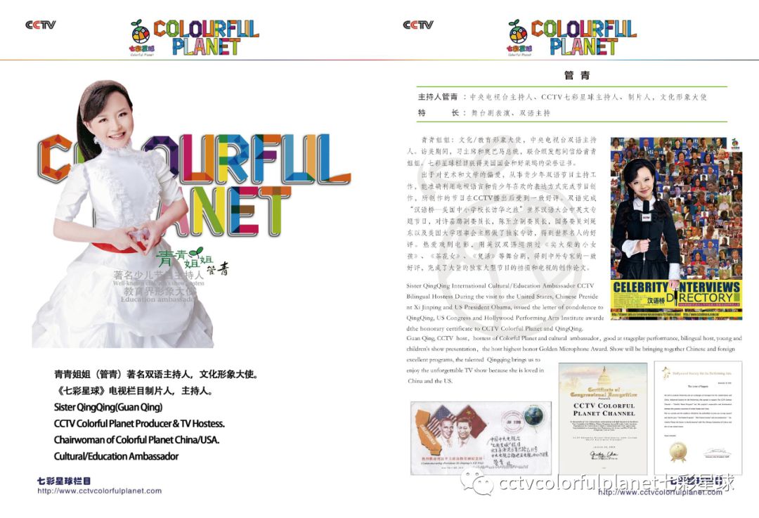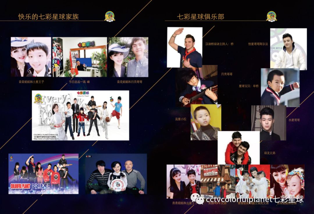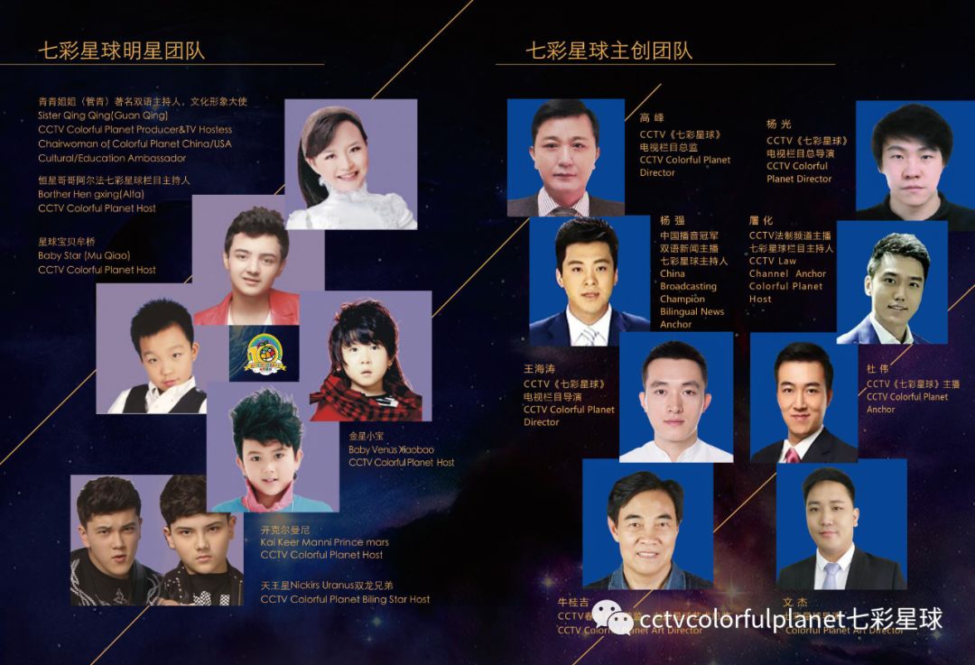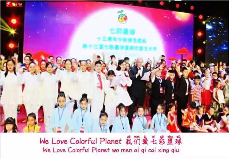 为世界少年儿童献上了中秋节珍贵而特殊的礼物。同时七彩星球大电影即将开拍,中美明星倾情合作,世界少年敬请期待。七彩星球开播13周年中秋国际综艺盛典由中国教育界形象大使,著名双语主持人青青姐姐、七彩星球栏目来自美国天王星Nickris Kent 来自中 恒星哥哥阿尔法星球宝贝牟桥 来自马来西亚的叶圯森领衔中英文双语主持,并诵读诗词